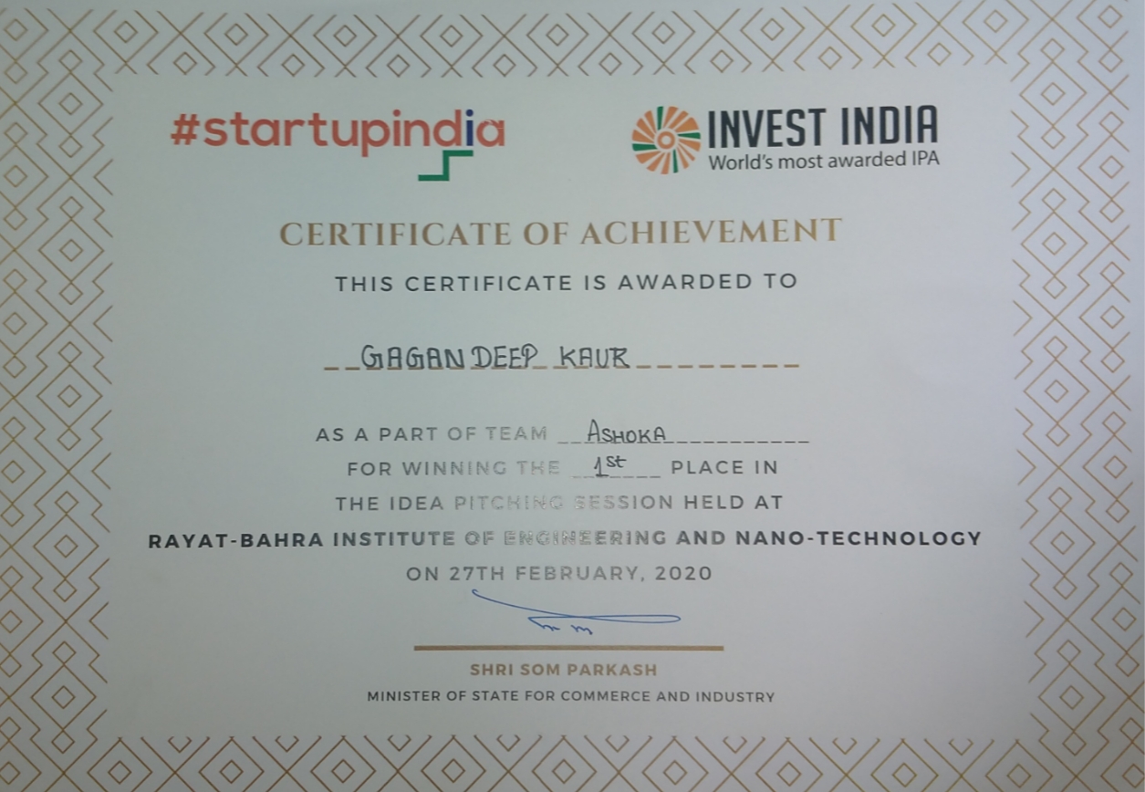 I Am the winner in Idea pitching session held by college campus from Startup India Organisation.